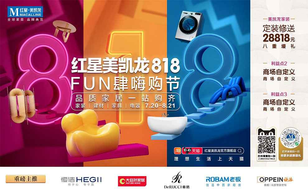 據(jù)介紹,紅星818FUN肆嗨購節(jié)將聚焦品質(zhì)消費,整體營銷投入高達20億,將打造為大力度、全品類、好品牌的家居購物節(jié)。全國門店,周周有活動,并通過線上線下同頻共振,從流量端、服務(wù)端到產(chǎn)品端真正滿足消費需求。
