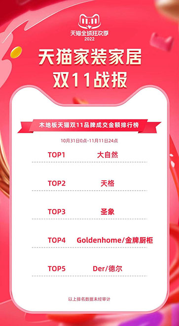與以往不同,今年大自然地板不僅繼續(xù)參與天貓、京東電商平臺(tái)的雙11大促,同時(shí)也參與居然之家和紅星美凱龍線(xiàn)下平臺(tái)的雙11大促,并一舉奪得“四冠王”。