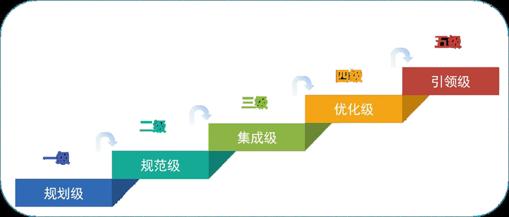 智能制造能力成熟度模型描述了企業(yè)實施智能制造要達到的階梯目標和演進路徑,提出了實現(xiàn)智能制造的核心要素、特征和要求,從人員、技術(shù)、資源、制造等要素維度,從低到高分五個成熟度等級綜合評價企業(yè)數(shù)字化、網(wǎng)絡(luò)化、智能化發(fā)展水平。目前國內(nèi)智能制造能力最高的企業(yè)為四級水平,全國暫無企業(yè)通過五級認證。
