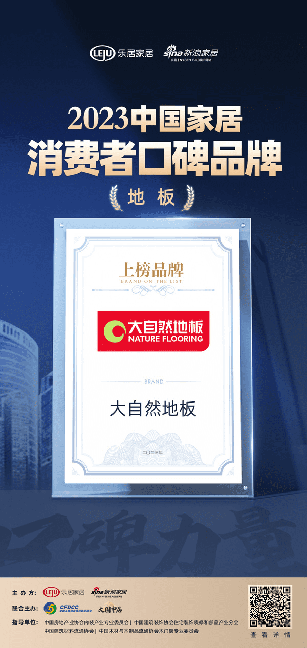 ? ?“洞悉口碑消費(fèi)之下的價(jià)值驅(qū)動(dòng),用消費(fèi)口碑見(jiàn)證品牌力量”,5月19日,新浪家居公布《2023中國(guó)家居消費(fèi)者口碑調(diào)查》結(jié)果,大自然地板榮登“2023中國(guó)家居消費(fèi)者口碑榜”。