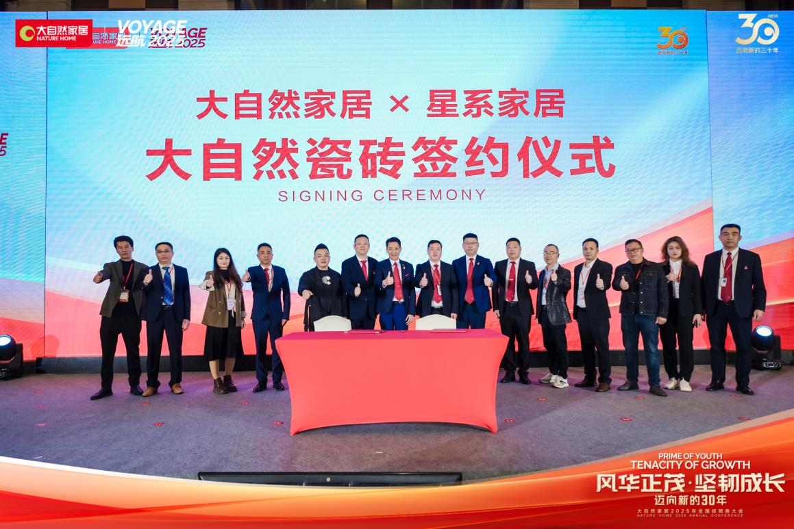 會上,在與會嘉賓的見證下,大自然家居與星系家居正式簽署了瓷磚合作協(xié)議。與此同時(shí),大自然家居旗下的德智家品牌與金朋科技確立了戰(zhàn)略合作。本次合作將在優(yōu)勢互補(bǔ)、互利共贏、共同發(fā)展的基礎(chǔ)上,助力大自然家居跨界多品類融合。