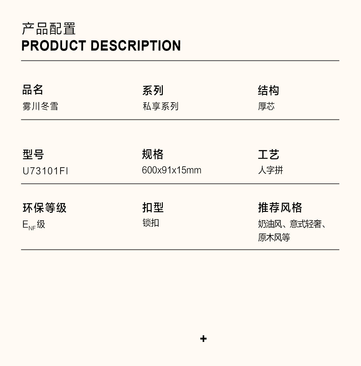 | 產(chǎn)品名稱/型號 | 霧川冬雪 U73101FI(人字拼) | ? |