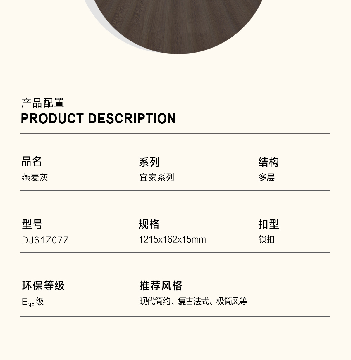 | 產(chǎn)品名稱/型號(hào) | 燕麥灰 DJ61Z07Z | ? |