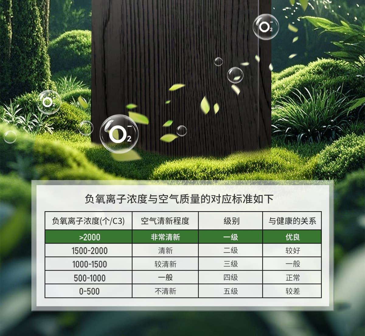 | 誘發(fā)空氣負離子量 | 比基礎環(huán)境提高10倍+ |