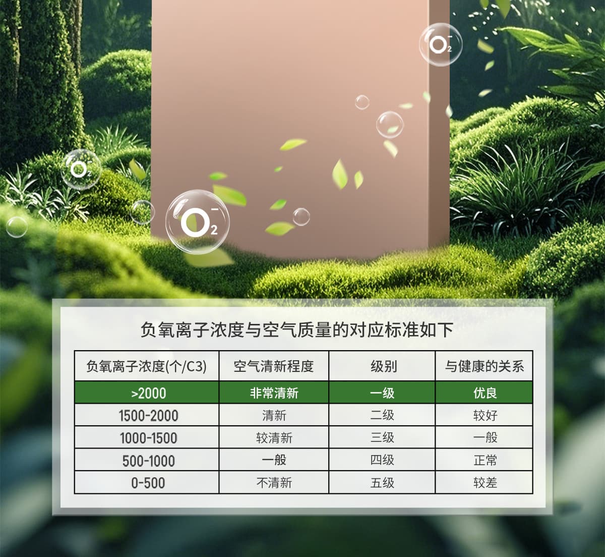| 誘發(fā)空氣負離子量 | 比基礎(chǔ)環(huán)境提高10倍+ |