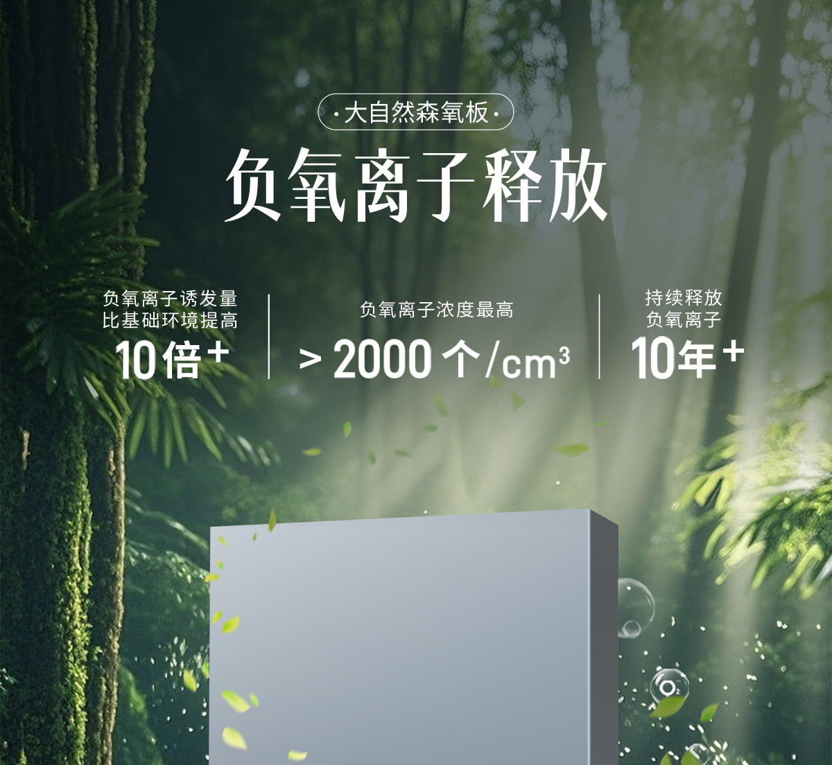 | 誘發(fā)空氣負(fù)離子量 | 比基礎(chǔ)環(huán)境提高10倍+ |