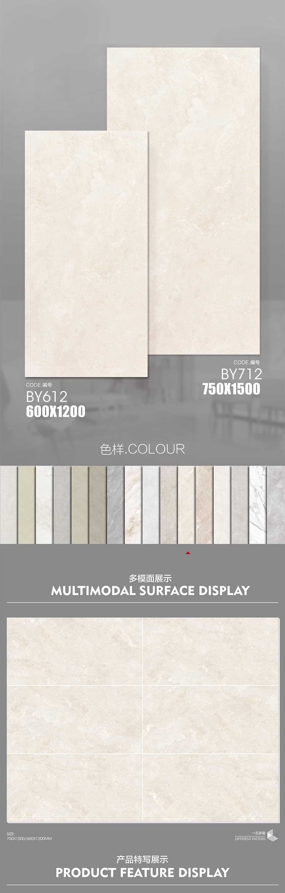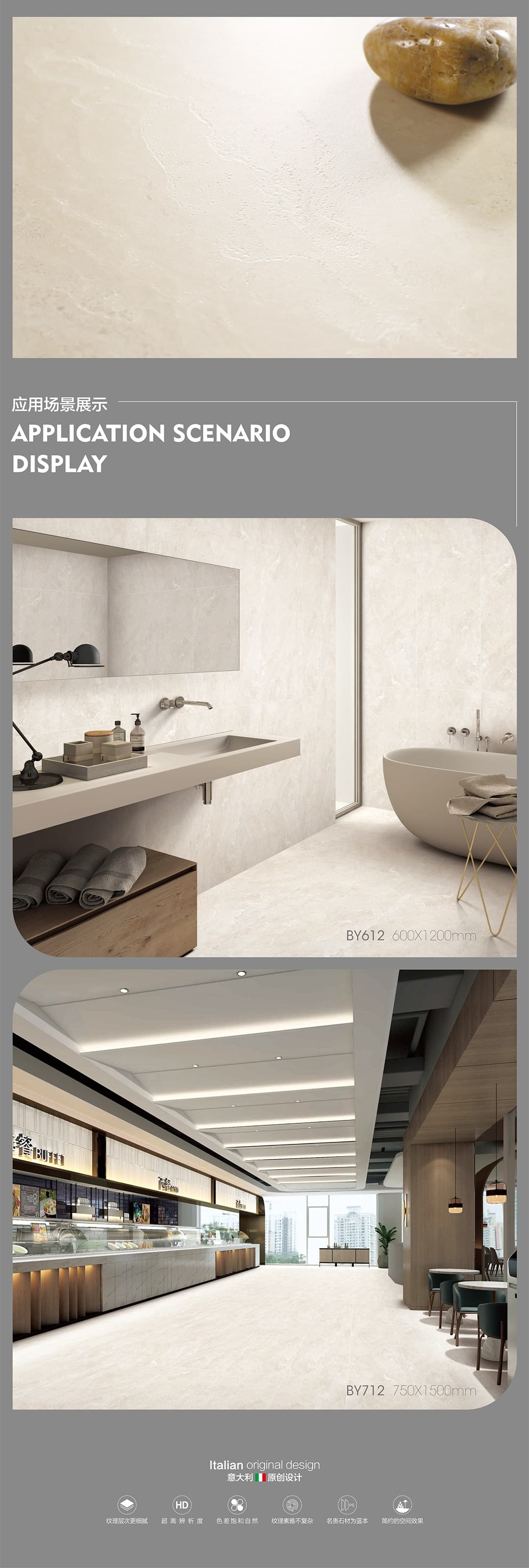 | 產品特性 | 表面柔和,防污效果強,防滑R10指標高,抗折強度好 |