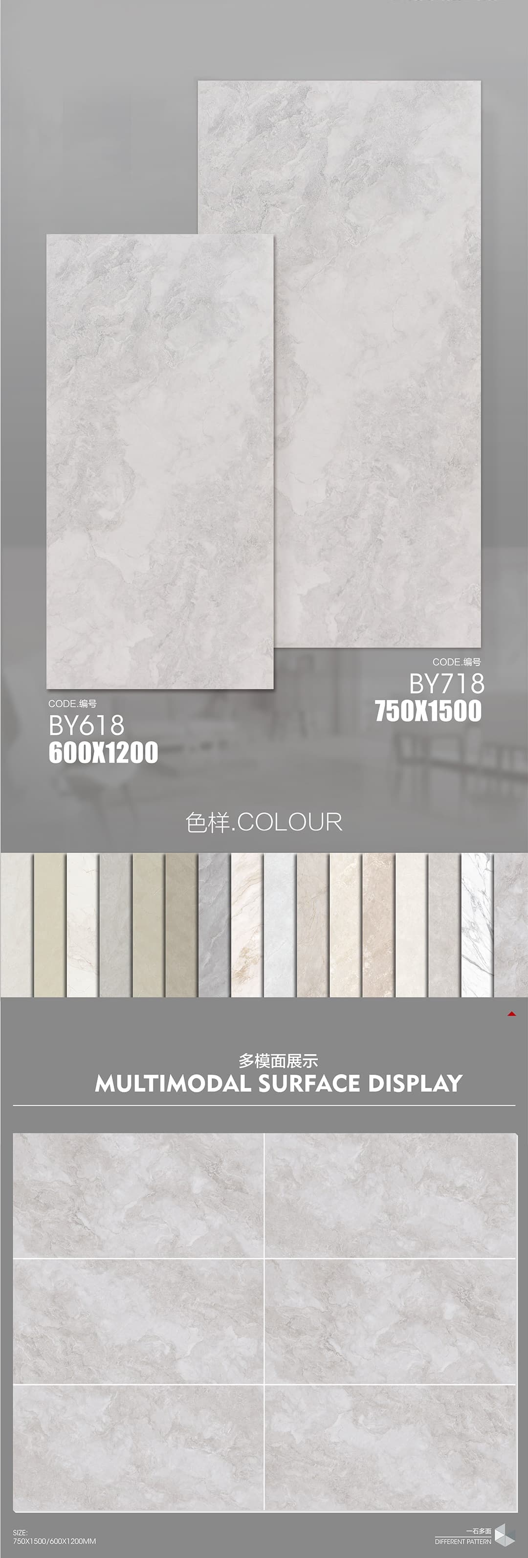 | 產(chǎn)品特性 | 表面柔和,防污效果強(qiáng),防滑R10指標(biāo)高,抗折強(qiáng)度好 |